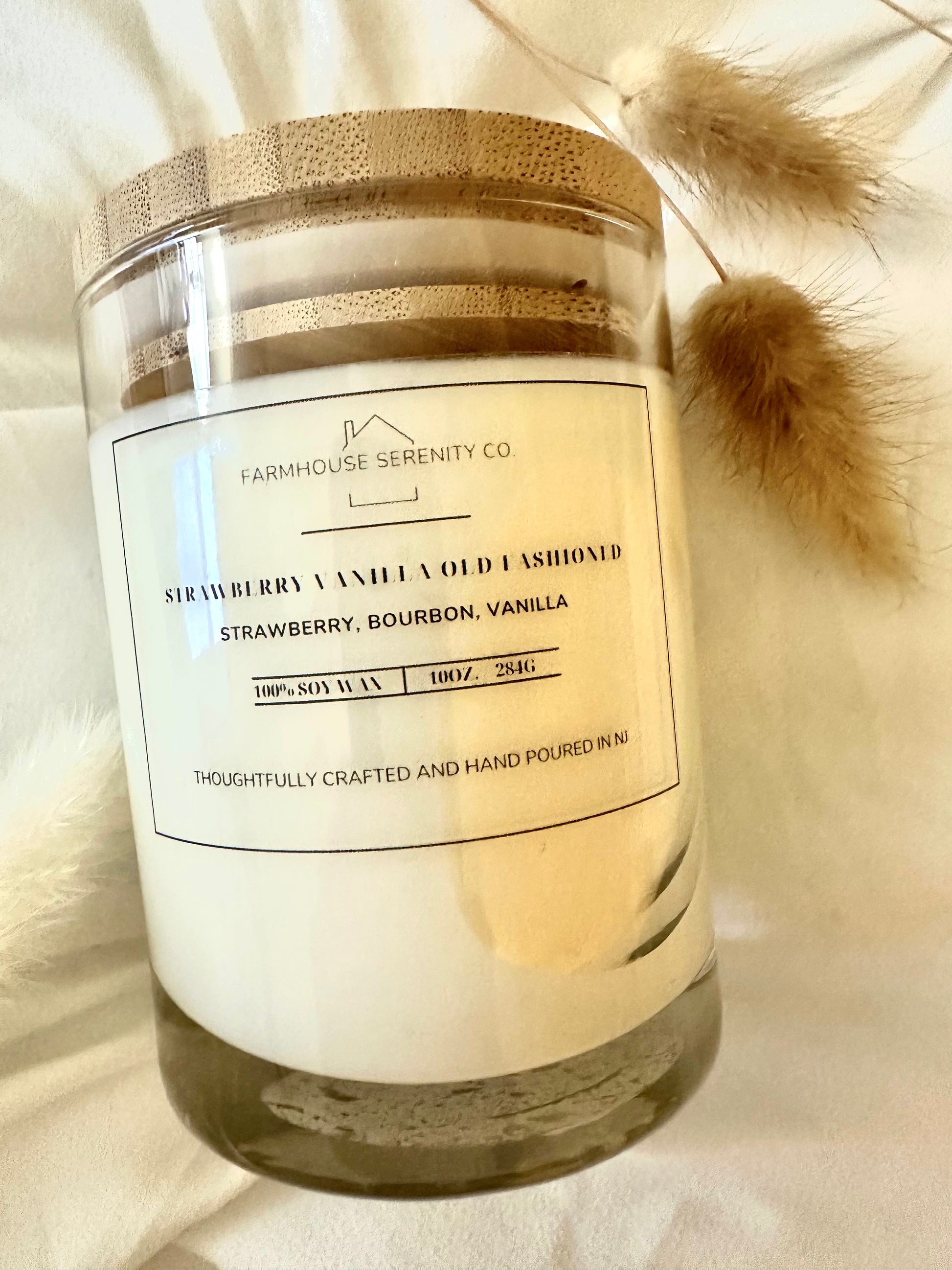 Strawberry Vanilla Old Fashioned | 10OZ. Heavy Bottom Jar Soy Candle | Two Cotton Wicks